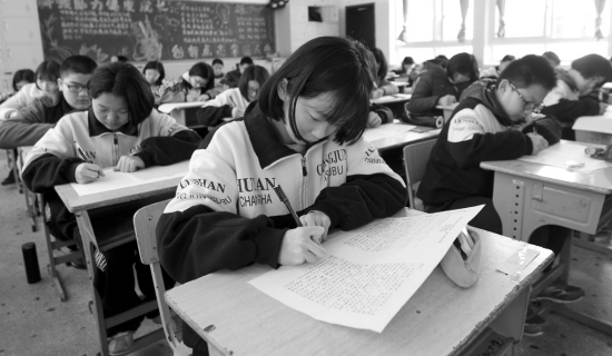 3月26日,師大附中博才實驗中學(北校),參加“尋找中國少年寫作之星”2017創文大賽長沙賽區決賽的學生在進行筆試。圖/記者金林