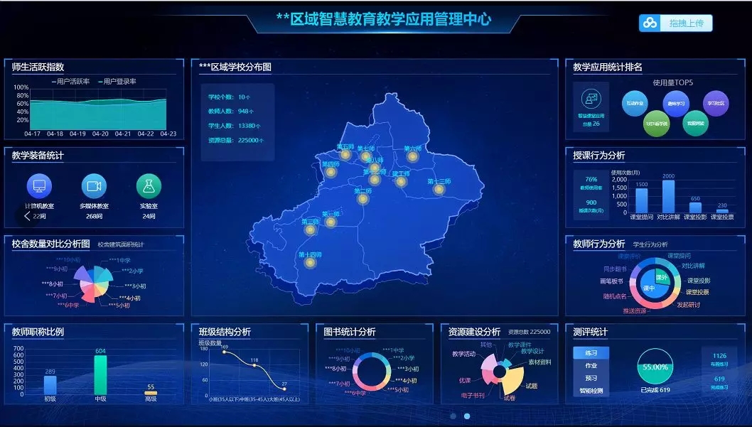 以天聞數媒ECO云開放平臺支持的浙江嘉興市智慧教育公共服務平臺為例,其匯聚了全市學校、教師、學生和教育投入等權威數據源,實現相關基礎數據的統一存放、統一管理、統一發布,并提供面向全社會的信息查詢功能。平臺服務于嘉興市教育局、5縣3區教育局、717所學校,覆蓋50余萬在籍學生、4萬余教師。向上拉通浙江省基礎教育數據中心,獲取機構、學生、教師基礎數據,橫向積極與嘉興市智慧城市大數據中心融合,打通并實現“戶籍、社保、房產”等其他嘉興市機關單位的大數據查詢功能,向下衍生到區縣、學校承載數據維護和管理的立體拉通。
