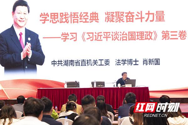 中共湖南省直機關工委辦公室主任、法學博士肖新國進行《習近平談治國理政》第三卷專題輔導。